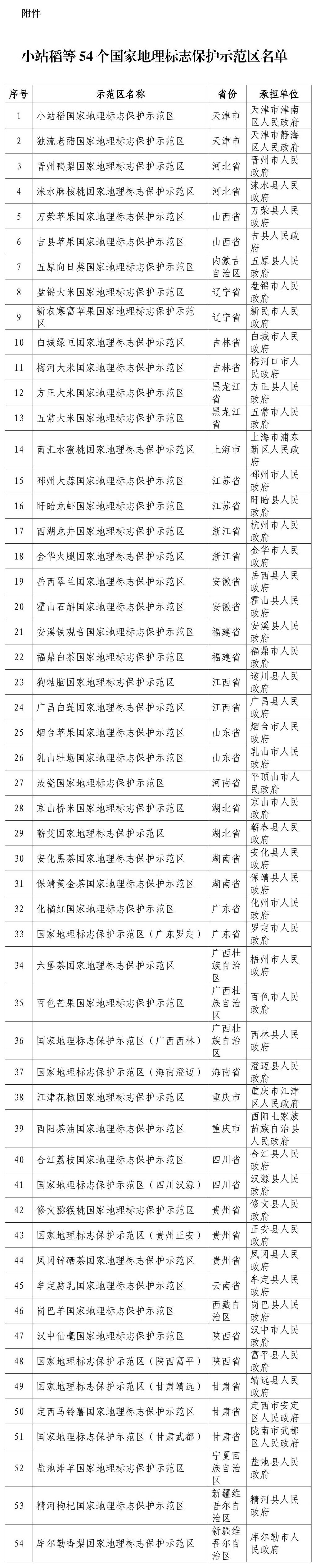 54个国家地理标志保护示范区公布
