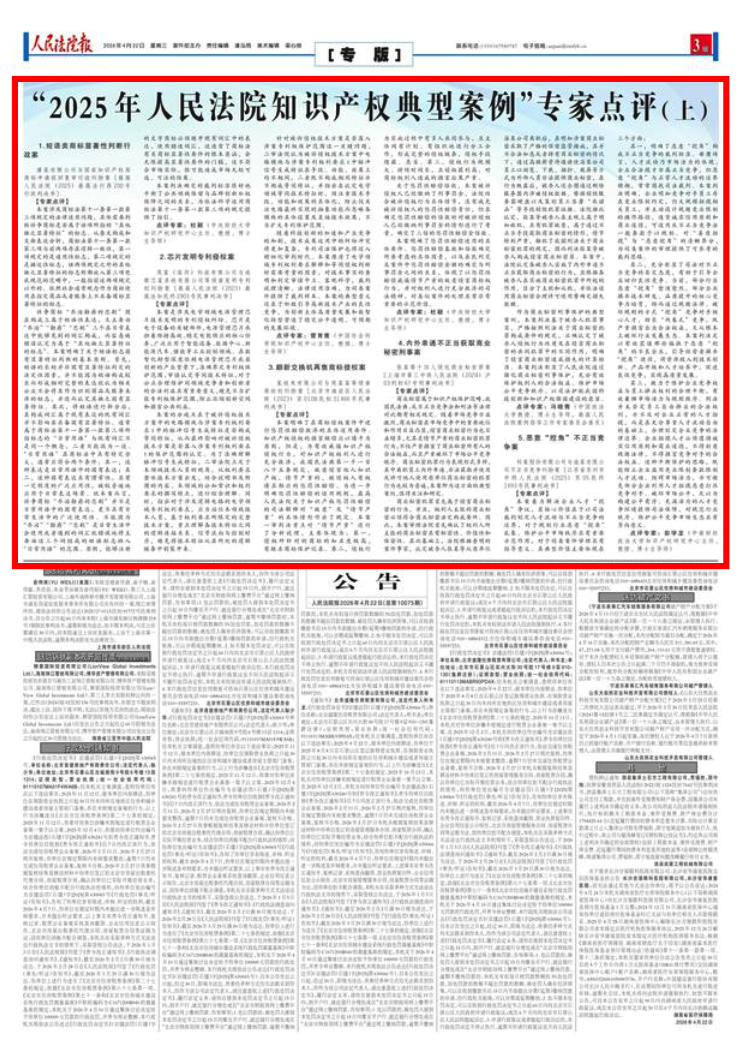 “2025年人民法院知识产权典型案例”专家点评(上)
